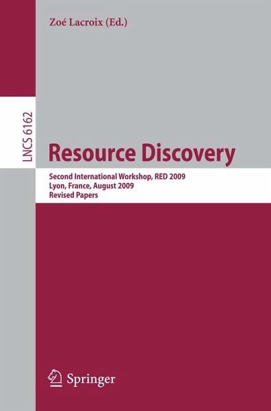Resource discovery is the process of identifying and locating existing resources thathavea particularproperty. Aresourcecorrespondsto aninformationsource such as a data repositoryor databasemanagement system (e. g. , a query form or a textual search engine), a link between resources (an index or hyperlink), or a servicesuchasanapplicationoratool. Resourcesarecharacterizedbycoreinf- mation including a name, a description of its input and its output (parameters or format), its address, and various additional properties expressed as me- data. Resources are organized with respect to metadata that characterize their content (for data sources), their semantics (in terms of ontological classes and relationships), their characteristics (syntactical properties), their performance (with metrics and benchmarks), their quality (curation, reliability, trust), etc. Resource discovery systems allow the expression of queries to identify and - cate resources that implement speci?c tasks. Machine-based resource discovery relies on crawling, clustering, and classifying resources discovered on the Web automatically. The First Workshop on Resource Discovery (RED) took place on November 25, 2008 in Linz, Austria. It was organized jointly with the 10th International Conference on Information Integration and Web-Based Applications and S- vices and its proceedings were published by ACM. The second edition of the workshop was co-located with the 35th International Conference on Very Large Data Bases (VLDB) in the beautiful city of Lyon, France. Nine papers were selected for presentation at this second edition. Areas of researchaddressedby these papers include the problem of resource characterization and classi?cation, resourcecomposition,andontology-drivendiscovery.