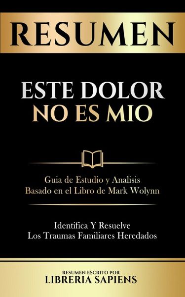 Esta publicación es un resumen. Esta publicación no es el libro completo. Esta publicación es un resumen condensado que recoge los conceptos e ideas más importantes basados en el libro original. RESUMEN: ESTE DOLOR NO ES MIO: IDENTIFICA Y RESUELVE LOS TRAUMAS FAMILIARES HEREDADOS ¿Estás listo para potenciar tu conocimiento sobre "ESTE DOLOR NO ES MIO"? ¿Quieres aprender de manera rápida y concisa las lecciones clave de este libro? ¿Estás preparado para procesar la información de todo un libro en tan solo una lectura de aproximadamente 20 minutos? ¿Te gustaría tener una comprensión más profunda de las técnicas y ejercicios del libro original? ¡Entonces este libro es para ti! LIBRERIA SAPIENS creó este cuaderno de trabajo con un objetivo: ayudarte a convertirte en un maestro del trabajo de MARK WOLYNN mediante sencillos y efectivos ejercicios y preguntas basados en el libro original. Además, encontraras: 1. Cómo implementar las ideas innovadoras de MARK WOLYNN en pequeñas y comprensibles lecciones prácticas al final de cada capítulo. 2. Preguntas detalladas capítulo por capítulo para despertar pensamientos, aplicar conocimientos y continuar aprendiendo. ¡Y mucho más! Si quieres potenciar tu capacidad para utilizar "ESTE DOLOR NO ES MIO", ¡entonces ve hacia arriba, haz clic en "Agregar al carrito" y compra ahora mismo! CONTENIDO DEL LIBRO: TRAUMA AJENO: EFECTOS PROFUNDOS EN NOSOTROS TRAUMAS PERSONALES: HERENCIA GENÉTICA Y CONDUCTUAL RESOLVER RELACIONES PADRES-HIJOS: CLAVE PARA ROMPER EL CICLO DEL TRAUMA DESVELANDO TEMORES OCULTOS: EL PODER DEL LENGUAJE REVELADOR TEMORES PROFUNDOS: SEÑALES DE TRAUMA FAMILIAR LIBÉRATE DEL TRAUMA HEREDADO: PAZ CON TU PASADO Y EL PASADO FAMILIAR