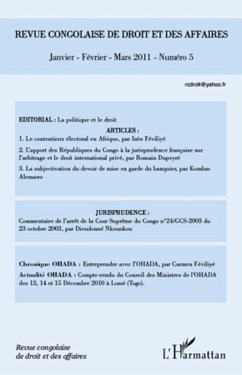 Ce numero comprend plusieurs articles : Le contentieux electoral en Afrique ; l'apport des Republiques du Congo a la jurisprudence francaise sur l'arbitrage et le droit international prive ; La subjectivation du devoir de mise en garde du banquier, ainsi que l'actualite Ohada.