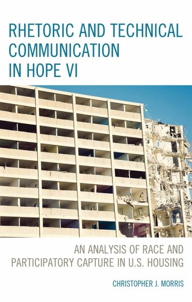 Rhetoric and Technical Communication in HOPE VI presents a rhetorical analysis of key documents and technical writing associated with HOPE VI, a federal mixed-income, public housing program. Despite mandating resident participation, HOPE VI increased homelessness, reinforced racial segregation, and facilitated gentrification projects that priced out low-income residents. Christopher J. Morris considers this phenomenon of participatory capture, in which participation works against the most vulnerable participants. By articulating participatory capture in contemporary American housing, Morris articulates the dominant narratives, discourses, and methods the U.S. Department of Housing and Urban Development used to leverage participatory methods and discourses to maintain social inequity. In exploring participation's pitfalls, the author also offers scholars and practitioners alike an alternative to participation: sovereign design rhetoric.