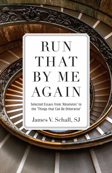 Over a span of six decades, Fr. James Schall has been one of our foremost thinkers and cultural commenters. A distinguished professor, the author of more than thirty books, and writer of countless essays-his favorite literary form-Fr. Schall has made a life of pondering the most important questions of this world and beyond.Now, in Run That by Me Again, Fr. Schall himself has selected more than fifty of his essays on the most intriguing, urgent, and sometimes difficult topics. These are things we want to-need to-think about again and again, and Schall, with his concise, readable style and teacher's heart, has a knack for explaining lofty ideas to all. Here, Schall ruminates on:language, Wodehouse, cooking, music, and putting Jesuit donkeys out to pasture (you'll just have to read it);abortion, marriage, Christian persecution, and other issues that continue to gnaw away at our Christian culture;Christ and his nature, what it means to be human, sin and its origins and consequences;and the Cosmos, the South, English departments, and other mysterious places. The common threads are a love of God, a thirst for wisdom, and a desire for a life well-lived. Whether this is your first time considering the questions posed and answered in these pages or if you are revisiting them with fresh eyes and a renewed spirit, it is well worth the time to sit with Fr. Schall-one of the greatest thinkers and teachers of the past century-and ponder the great mysteries and truths of life.