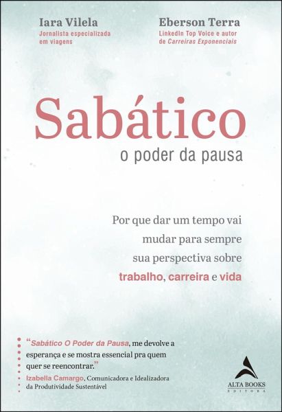 A Grande Resignação, fenômeno que levou milhares de profissionais a pedirem demissão, acendeu um sinal de alerta no mercado de trabalho: ninguém está mais disposto a arriscar a própria saúde mental por um emprego. O caminho que muitos escolhem é pausar a vida profissional por um tempo para viver outras experiências, que não cabem em uma rotina frenética e sem sentido. "Sabático O Poder da Pausa provocou uma revolução dentro de mim. Me reconectou com a Tati de anos atrás, quando passei por um período sabático de 10 meses. Não foi exatamente planejado, e sim impulsionado por uma demissão e pelo câncer do meu pai. Dar um tempo na carreira e dedicar tempo para minha família foi a melhor decisão que já tomei na vida. Avaliei o que me fazia feliz e reencontrei o meu propósito empreendendo. Já pensou o impacto positivo na sua vida se você decidir fazer um também?"-Tatiana Pimenta, Fundadora e CEO da Vittude "Vivemos em um contexto social que ignora a prevenção na maior parte do tempo, justamente por falta dele. Mas em detrimento do trabalho, ao mesmo tempo, reclama dos custos e consequências de uma vida de negligências com a saúde e com a necessidade de mais tempo. Por experiência própria posso dizer que é muito melhor cuidar da saúde enquanto há saúde e isso significa reconhecer os sinais, internos e externos, e desacelerar para continuar o movimento. Por isso, Sabático O Poder da Pausa, me devolve a esperança e se mostra essencial pra quem quer se reencontrar. Eberson e Iara são profundos e sensíveis com as palavras para conduzir o leitor à principal viagem da vida. Para dentro!"-Izabella Camargo, Comunicadora e Idealizadora da Produtividade Sustentável