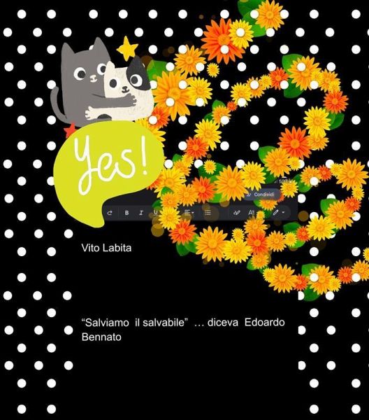 Il testo di Vito Labita, ispirato alla frase di Edoardo Bennato, evoca un forte senso di urgenza e difesa della diversità e della bellezza del mondo. Ogni punto sottolinea elementi da salvaguardare, dalle piccole cose quotidiane come i colori e i capelli, fino a questioni più ampie come l'ambiente e le relazioni umane. L'elenco, che passa da alimenti a paesi, culmina in un richiamo a una salvezza collettiva, suggerendo un desiderio di proteggere ciò che rende la vita ricca e significativa. La chiusura ironica sulla necessità di un "salvagente" per affrontare le difficoltà della società contemporanea è un colpo di genio, che invita a riflettere su chi realmente merita di essere salvato o abbandonato.