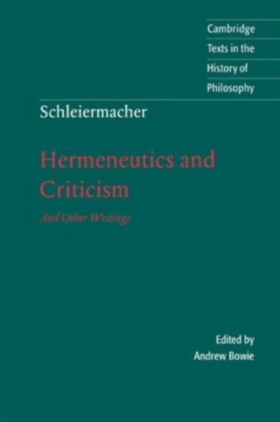 The founding text of modern hermeneutics. Written by the philosopher and theologian Friedrich Schleiermacher as a method for the interpretation and textual criticism of the New Testament, it develops ideas about language and the interpretation of texts that are in many respects still unsurpassed and are becoming current in the contemporary philosophy of language. Contrary to the traditional view of Schleiermacher as a theorist of empathetic interpretation, in this text he offers a view of understanding that acknowledges both the structurally and historically determined aspects of language and the need to take account of the activity of the individual subject in the constitution of meaning. This volume offers the text in a new translation by Andrew Bowie, together with related writings on secular hermeneutics and on language, and an introduction that places the texts in the context of Schleiermacher's philosophy as a whole.