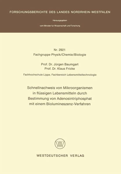 Schnellnachweis von Mikroorganismen in flüssigen Lebensmitteln durch Bestimmung von Adenosintriphosphat mit einem Biolumineszenz-Verfahren (eBook, PDF)