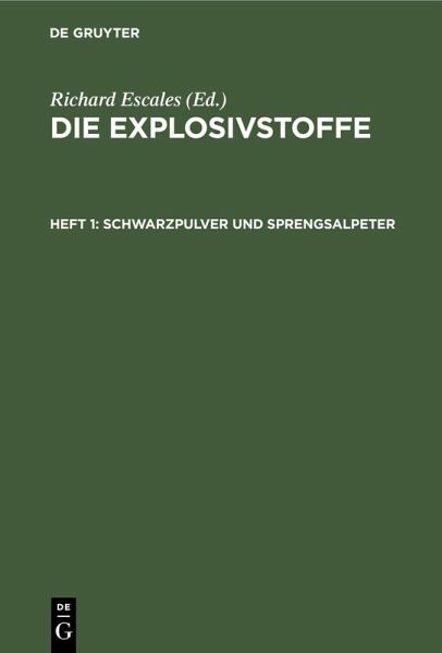 Frontmatter -- Vorwort -- Inhalt -- Erster Abschnitt. Geschichtliches -- Zweiter Abschnitt. Rohstoffe und Bestandteile -- Dritter Abschnitt. Patente -- Vierter Abschnitt. "Fabrikation." -- Fünfter Abschnitt. Aufbewahrung und Lagerung des Pulvers -- Sechster Abschnitt. Physikalische und chemische Untersuchung des Schwarzpulvers -- Siebenter Abschnitt. Ballistische und sprengtechnische Untersuchung -- Achter Abschnitt. Die Verbrennungsprodukte des Schwarzpulvers -- Neunter Abschnitt. Die Verwendung des Schwarzpulvers als Treibmittel -- Zehnter Abschnitt. Die Verwendung des Schwarzpulvers als Sprengmittel -- Elfter Abschnitt. Die Verwendung von Schwarzpulver in der Feuerwerkerei, der Laborierung von Artilleriemunition und der Zündschnurfabrikation -- Zwölfter Abschnitt. Schwarzpulverähnliche Sprengstoffe -- Dreizehnter Abschnitt. Verkehrsbestimmungen -- Vierzehnter Abschnitt. Wirtschaftliche Mitteilungen -- Literatur -- Patente -- Autorenregister -- Sachregister -- Backmatter
