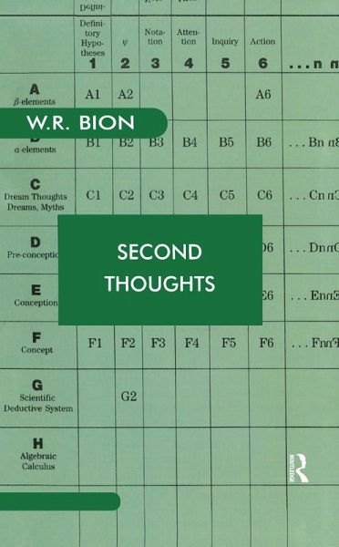 Second Thoughts is a collection of papers on Schizophrenia, Linking and Thinking, and is a commentary upon them in the light of later work. Originally composed between 1950 and 1962, it derives its title from the lengthy critical commentary which Bion attached to these case histories in the year of publication, 1967, and represents the evolutionary change of position marked in his three previous books and brought to further refinement in the present work.