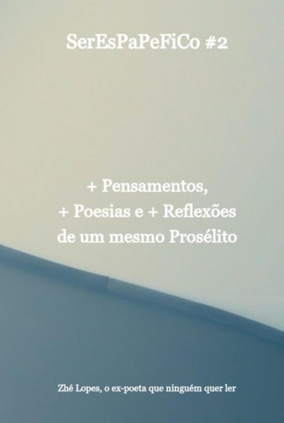 Esse é o segundo volume da minha série de livros, chamada #SerEsPaPeFiCo [olha um spoiler aí...]. O mundo está chato. As pessoas estão chatas. Eu sou um chato, por esse motivo, escolhi registrar momentos, e essa foi a melhor coisa que fiz. A ideia de manter um diário pessoal de forma pública, é uma loucura. Compilar tudo num livro? Loucura maior ainda. Mas o que seria da vida sem um pouco de loucura, imaginação e criatividade? Por isso, agradeço a você, que entrou nessa jornada comigo de reviver coisas e lições, que me fizeram perceber que uma vida só, não é o suficiente para pôr tudo que aprendemos em prática. Pois como já vimos por aqui, lição conhecida não significa que seja praticada. Seguem + 174 imbróglios e resenhas deste prosélito. Zhé Lopes (2023/2024) - serespapefico.blogspot.com.br