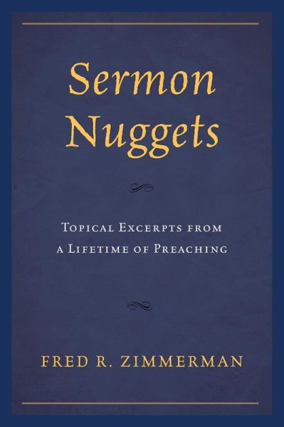 Sermon Nuggets is a collection of ninety-one topics treated in hundreds of Fred R. Zimmerman's sermons delivered over the span of six decades to a wide-ranging number of Protestant congregations, mostly in Ohio. Three hundred and twenty-six excerpts on these sermon topics are selectively chosen and titled to reflect the biblical, theological, and pastoral concerns. Sermon Nuggets provides insight into a variety of topics helpful to ministers in their own concerns and sermon preparations as well as to seminary students and teachers of religion.