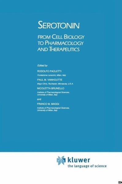 This volume represents the proceedings ofthe invited lectures ofthe first International Symposium on "Serotonin from Cell Biology to Pharmacology and Therapeutics" which was held in Florence on March 29 -Aprill, 1989. This meeting, held under the co-sponsorship of the Serotonin Club and the Fondazione Giovanni Lorenzini, represents the first attempt to bring together scientists fascinated by the complexity of the action of 5-hydroxytryptamine throughout the body and in various species. Hence this volume provides the reader with the unique overview of the sources, effects, receptors, physiological actions and pathological role of Serotonin. As such it will be of interest not only to the person devoting herorhis research efforts to the study of 5-hydroxytryptamine but also to all scholars and even clinicians wanting to know how the powerful monoamine can modulate cellular functions. To accelerate the publication of these proceedings the Editors and the publishers have selected the camera ready format and have avoided a lengthy refereeing process. Hence the scientific content of, and the opinions expressed in the chapters are the sole responsibility of the authors. The Editors Milan and Houston The Editors want to thank Mrs. H. Liepman and her staff at Kluwer for the prompt and efficient handling of the manuscripts.