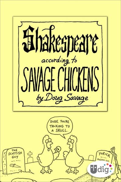 All work and no play made cartoonist Doug Savage a dull boy, until the day that he decided to draw two chickens on a yellow sticky note, followed by enough characters and absurdly amusing situations over the years to cover an entire cubicle farm.Now, in Savage's trademark style, comes Shakespeare According to Savage Chickens, an entertainingly comical e-book original collection.From Romeo and Juliet, Macbeth, and Hamlet to King Lear, the cast of Savage Chickens pays homage, in its own way, to classic literature.Sit back in your seat and enjoy the comedy of Chickens in Shakespeare.