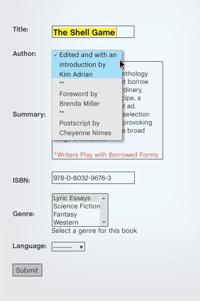 Within the recent explosion of creative nonfiction, a new type of form is quietly emerging, what Brenda Miller calls "hermit crab essays." The Shell Game is an anthology of these intriguing essays that borrow their structures from ordinary, everyday sources: arecipe, a crossword puzzle, a Craig's List ad. Like their zoological namesake, these essaysdo not simply wear their borrowed "shells" but inhabit them so perfectly that the borrowed structures are wholly integral rather than contrived, both shaping the work and illuminating and exemplifying its subject.The Shell Gamecontains a carefully chosen selection of beautifully written, thought-provoking hybrid essays tackling a broad range of subjects, including the secrets of the human genome, the intractable pain of growing up black in America, and the gorgeous glow residing at the edges of the autism spectrum. Surprising, delightful, and lyric, these essays are destined to become classics of this new and increasingly popular...