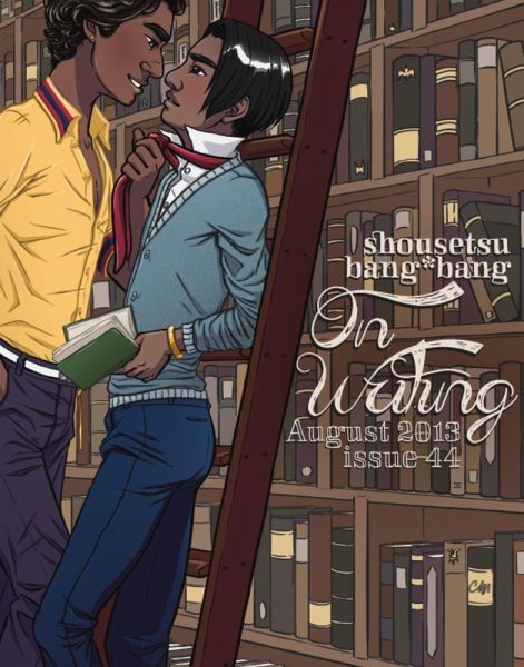 Shousetsu Bang*Bang issue 44 was released on August 26, 2013. The theme was On Writing. Shousetsu Bang*Bang is a webzine for original gay fiction/boy's love oneshot stories. This issue contains stories of romance between men which are between 1500 and 25,000 words and include explicit male-male sexual content. The issue contains the following stories: Cup of Tea, by Hyakunichisou 13 Stack Whackers, by shukyou White People Kissing in the Rain (WORKING TITLE), by Domashita Romero Volume V of the History of Ilores: Being a True Account of the Daring and Valour of Lord Lisandro Reyez de Villena, by Shikkoku no Suzu An Argument In Favour of Teen Vampire Novels, by Hinotori Book of Myth: Origins, by qui-te Overactive Imagination, by Aosora Hikaru Tijuana Strays, by Iron Eater The issue also contains the following standalone art: (っ˘̩╭╮˘̩)っ, by morgie
