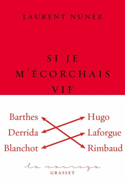 Voici le monde moderne : narcissisme des réseaux sociaux ; interdiction d'être en vacances de soi ; injonction ridicule : « Sois toi-même ! » Si je m'écorchais vif : trois écrivains qui ont pris congé d'eux-mêmes. Arthur Rimbaud a fui l'Europe. Victor Hugo a choisi l'exil. Jules Laforgue s'est absenté de son oeuvre. S'éclipsant lui-même de son livre, Laurent Nunez cède la parole à trois philosophes de l'effacement, Roland Barthes, Jacques Derrida, Maurice Blanchot, pour parler à sa place de chacun de ces auteurs. Ce brillant jeu littéraire sur le je littéraire nous parle du courage de ne plus considérer son moi comme essentiel et, bien au-delà, de la place de l'écrivain dans la société.