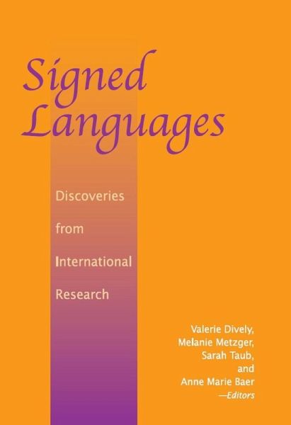 Signed Languages: Discoveries from International Research collects the thirteen freshest, most innovative papers presented at the sixth Theoretical Issues in Sign Language Research conference in 1998, the largest of its kind ever convened. Presented together in this timely compendium, the research reflects the current trend toward focusing on international signed languages that previously have been ignored, including those of Sweden, Israel, Venezuela, and northern Nigeria. The anthology is divided into six sections: Phonology, Morphology and Syntax, Psycholinguistics, Language Acquisition, Sociolinguistics, and Poetics. In Part One, articulatory constraints and the sign language of the Netherlands are addressed. In Part Two, researchers tackle noun classifiers, nonhanded signs, and verb classes in the signed languages of Sweden, the United States, and Israel respectively. Part Three offers the study, "e;Functional Consequences of Modality: Spatial Coding in Working Memory for Signs."e;Language acquisition is analyzed in both adult learners and deaf children in Part Four. Part Five reports on the relationship between language and society around the world, focusing particularly on the signed languages of Venezuela and northern Nigeria. Part Six considers the techniques employed in British Sign Language poetry and ASL poetry. Edited by Valerie Dively, Melanie Metzger, Sarah Taub, and Anne Marie Baer, Signed Languages sets the pace on the current signed language research, becoming an essential resource for any linguist's or deaf scholar's library. Valerie Dively and Sarah Taub are Assistant Professors in the Department of Linguistics and Interpretation at Gallaudet University. Melanie Metzger is Associate Professor in the Department of Linguistics and Interpretation at Gallaudet University. Anne Marie Baer, former ASL Assessor/Evaluator at the Center for ASL Literacy at Gallaudet University, currently conducts research in Colorado.