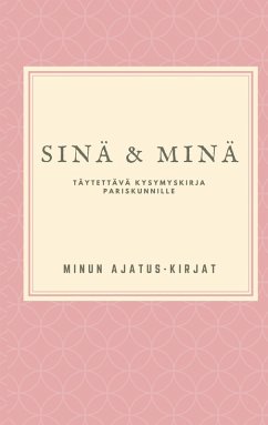 Sinä ja Minä- kirja on romanttinen ja hauska täytettävä kysymyskirja pariskunnille. Se on mainio tee-se-itse muistelmakirja sekä oiva väline pohtia ja muistella yhteistä taivaltanne sekä oppia toisistanne jotakin uutta. Kirja sopii mainiosti myös lahjaksi kumppanillessi tai häälahjaksi pariskunnille. Luokaa yhdessä oma muistelmakirja tai kehittäkää suhdettanne entisestään täyttämällä kirjan kysymyksiä.
