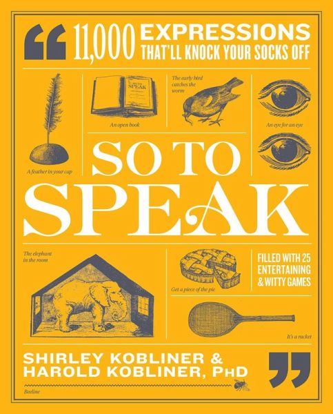 Engage with everyday expressions in a completely different (and fun!) way, with this entertaining and interactive book of common phrases that can turn a humdrum gathering into a raucous game night. We use expressions and idioms all the time. When you feel sick, you're "under the weather." When you feel great, you're "on top of the world." But whether you're a "smart cookie" or a tough one, youand almost everyone you knowhave a veritable smorgasbord of expressions stored deep in your brain. So to Speak: 11,000 Expressions That'll Knock Your Socks Off is the largest collection of its kind. Thoughtfully divided into sixty-seven categoriesfrom Animals to Food & Cooking, from Love to Politics, this reference guide may have more in common with an activity book! Don't look for definitions and etymologies, because the book is just the beginning. So to Speak is the launchpad for your lifelong journey to explore the universe of expressions. In fact, it's designed to get readers off the pageand engaging with each other through word games and puzzles. So to Speak spurs discussion, debate, and play, while encouraging the art of listening and celebrating the joy of words. Authors Shirley and Harold Kobliner spent more than half a century nurturing and teaching children. So to Speak is a reflection of their deeply held belief that regardless of a person's age, the most impactful learning happens when you're having fun. Whether it's grandparents teaching their favorite expressions to their grandkids, teens helping adults with the latest lingo or slang, or millennials indulging in their love of wordplay and games, this is the perfect book for any lover of language.