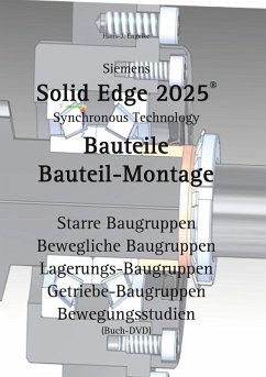 Solid Edge 2025 Bauteile Bauteil-Montage Dieses Buch stellt eine Sammlung von Bauteil-Montagen-Anwendungen, in Bezug auf erstellte Bauteile, dar. Die beiden Anfangskapitel zeigen, im Einzelnen, die technischen Grundlagen und die programmtechnische Basis von Solid Edge 2025. Die Baugruppen-Montage von Bauteilen wird über starre und bewegliche-Baugruppen, Lagerungs-Baugruppen und Getriebe-Baugruppen in Einzelkapiteln mit Programmschritten, Anpassungen und Befehlsfunktionen ausführlich Schritt für Schritt dargestellt und mit erläuternden Bildfolgen unterstützt, abschließend wird im Abschluss-Kapitel 15 ein Einstieg in die Erstellung von Bewegungsstudien dargestellt. Die Inhalte beziehen sich auf Solid Edge 2025 als Basis, sind aber im engen Maße versionsneutral. Die Grundinstallation, die aufwendige Programmanpassung und die benötigten weiteren Anwendungs-Installationen finden einen breiten Raum im Kapitel 8 und 9 auf der Buch-DVD, weiterhin zeigt das Kapitel 10, ebenfalls auf der Buch-DVD, die Anwendung verschiedener Darstellungstechniken auf Basis einer fertigen Vorlage. Ein Wort noch in persönlicher Sache, dies Buch erscheint wieder über BOD, da es für Fachbuchverlage nicht gewinnbringend ist, CAD Bücher in hoher Druckqualität und mit großer Seitenzahl, für einen kleineren Anwenderbereich zu verlegen. Mit den Support-Kapiteln, die zur Erarbeitung der verschiedenen Möglichkeiten der Bauteilerstellung von Solid Edge 2025 unbedingt nötig sind, wird diese BOD-Seitengrenze bei Weitem überschritten, eine Reduktion, an dieser wichtigen Stelle, wollte ich nicht vornehmen, deshalb sind die zusätzlichen Seiten auf der Buch-DVD zu finden. Durch eine Umstrukturierung der Buchausgabe zu Solid Edge 2025, einige Kapitel gehen auf die Buch-DVD, konnte ich den Angebotspreis bei BOD deutlich senken. Für die Käufer dieses Buches biete ich die Möglichkeit an, eine DVD gegen Vorlage der Kaufbestätigung, gratis zu bestellen. Die Buch-DVD beinhaltet die, in den Kapiteln 3 bis 6 und Supportkapitel 9 bis 15, beschriebenen Arbeitsdateien. Weiterhin sind das komplette Buch und die Support-Kapitel, in einer Farbausgabe im PDF-Format beigegeben, um die Nachteile der Graustufen-Ausgabe zu mildern.