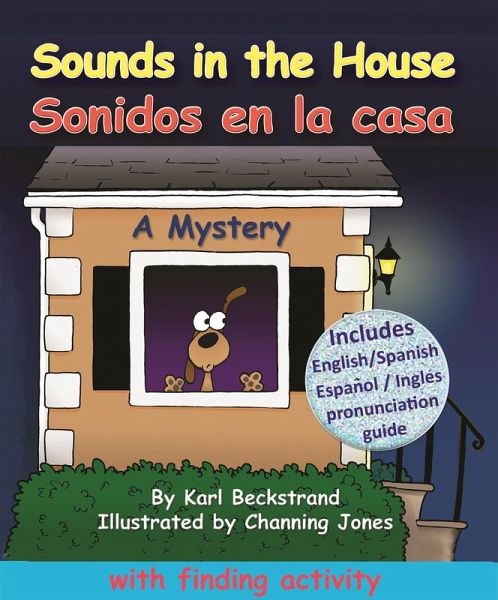 What could be causing those squeaks and bumps? Nothing to fear, there's only fun here! Sounds in the House is a funny bedtime story on fear, courage and friendship. It has full text and a pronunciation guide in both English and Spanish (with lots of verbs), finding activities, plus vivid illustrations to aid language comprehension (ages 3 & up). Get this book in Spanish-only, English-only, ebook or app versions (with pronunciation guide): Premio Publishing & Gozo Books (Mini-mysteries for minors worldwide rights 2004, 2011. Dog and cat book) Premiobooks.com, Baker & Taylor, Follett Library Resources/BWI Title Wave, Ingram, B&N/NOOK, Brodart, Kindle/Amazon, iTunes/Sony/Kobo, Overdrive, and select retailers. 24 page, perfect-bound, 8.5"x8.5" soft cover picture book/gift book, 150 words (double for bilingual/ESL. Dog and cat book), by Karl Beckstrand, illustrated by Channing Jones