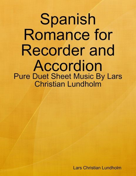 This world-famous traditional piece of guitar music has been recorded as songs by among others Tom Jones, Julio Iglesias, Mike Oldfield and Mireille Mathieu is of either of Spanish or South American origins. Typically it has been attributed to Antonio Rubira, David del Castillo, Francisco Tarrega, Fernando Sor, Daniel Fortea, Miguel Llobet, Antonio Cano, Vicente Gomez and Narciso Yepes but most likely it is an anonymous composers work. First recorded in Madrid sometime between 1897 and 1901 and published in Argentina in 1913, Spanish Romance gained worldwide fame in Rene Clements 1952 film Jeux interdits also known as Forbidden Games Duet Sheet Music for Recorder accompanied by Accordion arranged by Lars Christian Lundholm. Spanish Romance is also known by alternative title: Romance Anonimo, Estudio en Mi de Rubira, Romance de Espana, Romance of the Guitar, Romanza, Romance d'Amour, Forbidden Games, Quiero, Amour Defendu, Du aer den ende, Walzer der Liebe, You are the onl....