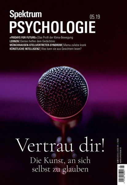 Vertrauen in die eigenen Fähigkeiten zu haben, ist oft leichter gesagt als getan. Wir wären wohl alle gern selbstbewusst, nur um dann doch festzustel¬len, wie Zweifel an uns nagen, wenn wir vor der nächsten großen Herausforderung im Leben ste-hen. Aber was heißt es überhaupt, sich selbst zu vertrauen - und warum fällt dies manchen Menschen schwerer als anderen? Unsere Autorin Stefanie Uhrig wirft in dieser Ausgabe ein wissenschaft¬liches Schlaglicht auf das Thema (S. 22). Und sie erklärt, mit wel¬chen Tricks sich unser eigenes Selbstvertrauen - und auch das von anderen - steigern lässt. Denn schließlich können wir nicht nur beeinflussen, wie wir uns selbst sehen, sondern helfen als Eltern, Großeltern, Erzieher oder Lehrer auch Kindern dabei, von klein auf an sich zu glauben. Weitere Themen dieser Ausgabe:Münchhausen-Stellvertreter-Syndrom; Lernen; Burnout