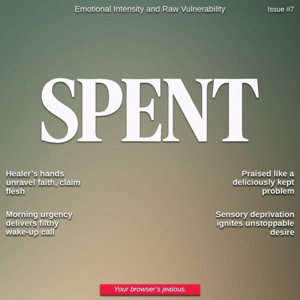 Spent Magazine Issue #7 cracks open the heart of emotional intensity, blending gritty, hardcore smut with the tender ache of vulnerability. From a healer's forbidden touch in a war-torn camp to a voice that seduces without a single caress, these stories-paired with feral flash shorts and soul-baring advice-deliver unfiltered passion and psychological depth. Perfect for men who crave more than a quick thrill, this issue is your invitation to lose yourself in the messy, electric truth of desire.