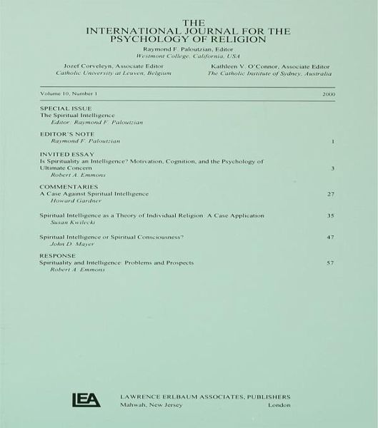First published in 2000. This is Volume 10, No 1 of the International Journal for the Psychology of Religion. One of the most important concepts in the history of psychology is intelligence. Traditionally, intelligence has been thought of as a more or less unitary mental capacity, connoting a general problem-solving ability and skill at abstract reasoning. More recently, a major counter-argument to the idea that intelligence is unitary was published by Howard Gardner (1993) In his view, intelligence is not a unitary construct but instead is multidimensional, comprised of linguistic, musical, logical-mathematical, spatial, bodily-kinesthetic, interpersonal, and intrapersonal facets. Since then, a dialogue has continued about what does and does not constitute an intelligence. This journal is a collection of essays that discuss this question.