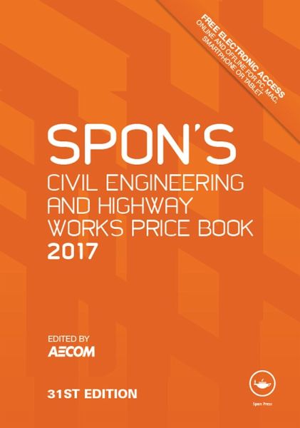 SPON'S CIVIL ENGINEERING AND HIGHWAY WORKS PRICE BOOK 2017 from AECOM gives costs for both general and civil engineering works and highway works. It provides a full breakdown of labour, plant and material elements, with labour rates updated. It is an essential component of infrastructure estimating maturity, benchmarking and cost intelligence, and gives sound guidance for estimators, contractors and clients.
