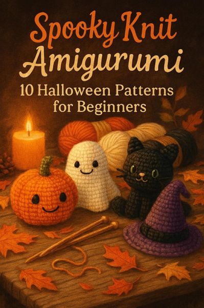 Spooky Knit Amigurumi: 10 Halloween Patterns for Beginners is a fun and beginner-friendly knitting book packed with scary-cute projects. Inside you'll find ten original patterns inspired by classic Halloween favorites, including pumpkins, ghosts, bats, black cats, candy corn, a witch hat, a tiny tombstone, a vampire, a spider, and a skull.