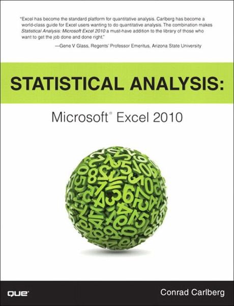 Top Excel guru Conrad Carlberg shows how to use Excel 2010 to perform the core statistical tasks every business professional, student, and researcher should master. Using real-world examples, Carlberg helps you choose the right technique for each problem and get the most out of Excel's statistical features, including its new consistency functions. Along the way, you discover the most effective ways to use correlation and regression and analysis of variance and covariance. You see how to use Excel to test statistical hypotheses using the normal, binomial, t and F distributions.