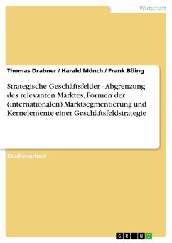 Studienarbeit aus dem Jahr 2003 im Fachbereich BWL - Offline-Marketing und Online-Marketing, Note: 1,5, Duale Hochschule Baden-Württemberg Heidenheim, früher: Berufsakademie Heidenheim (Wirtschaftswissenschaften - Internationaler Handel), Veranstaltung: Marketing Management, Sprache: Deutsch, Abstract: Die Planung strategischer Geschäftsfelder ist von allen strategischen Unternehmungsplanungen die wohl weitreichendste. Als langfristige integrierte Planung von Produkten, darauf aufbauenden Produktprogrammen und dazugehörigen Potentialen konkretisiert sie, in welchen Branchen die Unternehmung welche Tätigkeitsfelder, Leistungsarten und Kundengruppen ansteuert. Die Bildung strategischer Geschäftsfelder soll es einem Unternehmen in diesem Zusammenhang erlauben, die divergenten Marktaktivitäten im Rahmen einer Gesamtunternehmensbetrachtung aufeinander abzustimmen und zu planen. Allgemein formuliert entspricht ein strategisches Geschäftsfeld einem möglichst isolierten Ausschnitt aus dem gesamten Betätigungsfeld des Unternehmens mit eigenen Ertragsaussichten, Chancen und Risiken, für den relativ unabhängig eigenständige Strategien entwickelt und realisiert werden können. Die Entwicklung strategischer Geschäftsfelder stellt sich hierbei als ein komplexer Prozess dar, der sich im wesentlichen in drei Stufen vollzieht (s. Abb.1). Um diese Komplexität veranschaulichen zu können, befasst sich die vorliegende Arbeit in einer Überblick gewährenden Form mit den jeweiligen Prozessstufen. [...]