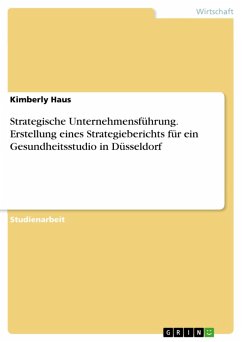 Studienarbeit aus dem Jahr 2022 im Fachbereich BWL - Unternehmensführung, Management, Organisation, Note: 1.7, Deutsche Hochschule für Prävention und Gesundheitsmanagement GmbH (Prävention und Gesundheitsmanagement), Veranstaltung: Unternehmensführung, Sprache: Deutsch, Abstract: Diese Hausarbeit beschäftigt sich mit der Gründung eines Gesundheitsstudios mit dem Schwerpunkt Rehasport in Düsseldorf unter dem Namen "Vital und Fit". Ausgangspunkt ist die zunehmende Relevanz des Themas Gesundheit in der Gesellschaft, wie aktuelle Studien des Robert Koch-Instituts zeigen. Obwohl sportliche Aktivität in den letzten Jahren zugenommen hat, erfüllen nur etwa 20 % der Erwachsenen die WHO-Empfehlungen - ein klarer Handlungsbedarf für präventive und gesundheitspolitische Maßnahmen. Die Arbeit analysiert die Ausgangssituation, den Unternehmensstandort und -typ sowie Zielgruppen und Anspruch des Studios. Darauf aufbauend werden Vision, Leitbild und Unternehmenspolitik entwickelt. Es folgt eine strategische Zielplanung, ergänzt durch Branchen- und SWOT-Analyse, Definition strategischer Geschäftsfelder und eine abschließende Strategieformulierung mit Handlungsempfehlung. Ziel ist es, die Erfolgschancen des Studios "Vital und Fit" im wachsenden Gesundheitsmarkt fundiert zu bewerten.