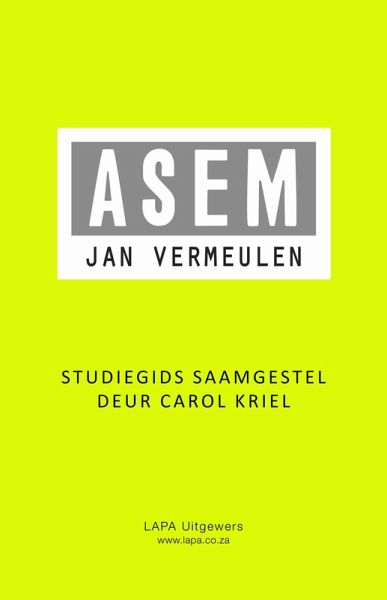 Hierdie studiegids is voorberei sodat die leerders wat meer uit die boek wil put as slegs die basiese storie, dit wel kan doen. Elke afdeling bestaan dus uit 'n stukkie teorie van die literêre konsep onder bespreking, 'n toepassing daarvan op die boek Asem, en besprekingspunte wat die leerders dieper insig in sowel die konsepte as die boek sal gee. Die besprekingspunte kan óf mondeling in die klas óf as geskrewe take gedoen word. Die volgende aspekte word behandel: plot (intrige) en storie, en hoe hulle vergelyk; karakters en karakterisering - 'n bespreking van ronde en vlak of plat karakters en hoe hulle mekaar beïnvloed; die rol wat verskillende ruimtes in die verhaal speel; watter tipe verteller ons in die boek aantref en die invloed wat dit het op hoe die verhaal vertel word. Laastens word die inhoud per hoofstuk by wyse van vrae gedek.