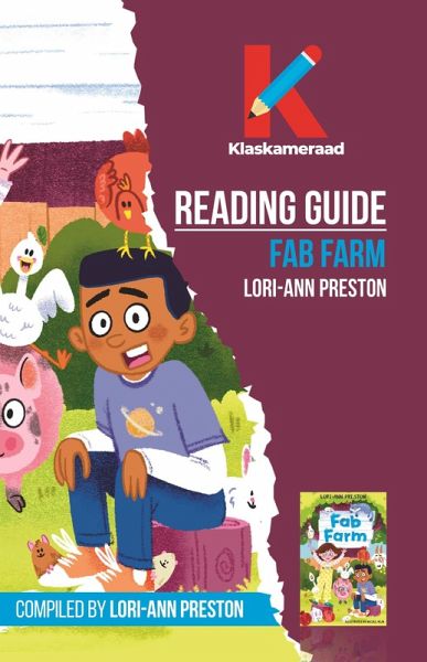 DIE GIDS Hierdie gebruikersvriendelik en praktiese gids is ideaal vir klaskamergebruik. Die gids begin met eenvoudige letterkundige terme, en daar is vir elke hoofstuk vrae en antwoorde, skryf- en mondelingaktiwiteite. Daar is ook 'n hoofstuk wat gebasseer is op 'n uittreksel uit die drama Fab Farm, met eenvoudige dramateorie en vrae en antwoorde. Die gids sal onderwysers help om letterkundige aspekte op 'n eenvoudige manier te onderrig en al die aktiwiteite, vrae en antwoorde sal beslis die onderwyser se voorbereidingstyd verkort. THE GUIDE This user-friendly and practical guide is ideal for classroom use. There is basic information on literature elements, questions and answers, speaking and writing activities for each chapter. There is also a chapter based on an extract from the drama Fab Farm, with simple drama theory and questions and answers. The guide will help teachers to teach literary aspects in a simple way and all the activities, questions and answers will definitely shorten the preparation time for the teacher.
