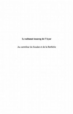 Le sultanat de l'Ayar (improprement ecrit Air) fut sans aucun doute la plus elaboree des formations politiques edifiees par des Touareg. L'auteur s'est attache a retracer cette experience unique, a partir des textes anciens relatifs a l'expansion des Berberes au Sahara et a la formation du peuple Touareg. Les Touareg de l'Ayar apparaissent comme des batisseurs de civilisations, createurs de la prestigieuse cite d'Agades, edificateurs d'ecoles, ecrivains, penseurs, protecteurs de routes et marchands, mais aussi combattants pour des causes moins nobles, animateurs de nombreux conflits internes et externes.