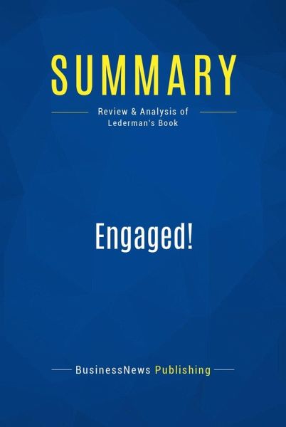 This complete summary of the ideas from Gregg Lederman's book "Engaged!" explains that customers love doing business with companies which have a highly motivated workforce that is enthusiastically dedicated to delivering a great experience. In his book, the author provides three things that must be done in order to reach that goal and how you can achieve them to give your customers the best experience possible and keep them coming back again and again.