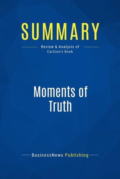 This complete summary of the ideas from Jan Carlzon's book "Moments of Truth" shows how the best way of delivering consistently high-quality moments of truth lies in building a customer-driven company. The author explains the six essential characteristics of this type of company and how all of these elements can be brought together to achieve significant success. By applying these six principles, you can learn how to focus on your customers and guarantee success.