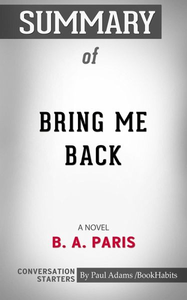 Ten years ago, Layla and Finn went on vacation. During a stop at a service station, Layla went missing, never to be seen again. Now, Finn is engaged to her sister, Ellen. They came close because of their shared pain over Layla's disappearance and now they want to be together. But Finn suspects there is more to Ellen that what meets the eye, and, after he starts receiving strange messages from people who claim to have seen Layla alive, he starts to question everything. "Bring Me Back" is a suspense thriller written by B. A. Paris, bestselling author of "The Breakdown" and "Behind Closed Doors". It was described as an exceptional Hitchcockian novel by Publishers Weekly.