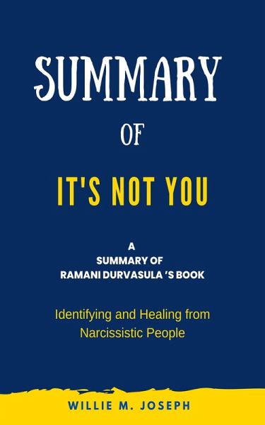 DISCLAIMER This book does not in any capacity mean to replace the original book but to serve as a vast summary of the original book. Summary of It's Not You by Ramani Durvasula: Identifying and Healing from Narcissistic People IN THIS SUMMARIZED BOOK, YOU WILL GET: Chapter provides an astute outline of the main contents. Fast & simple understanding of the content analysis. Exceptionally summarized content that you may skip in the original book Dr. Ramani Durvasula's book, It's Not You, offers a guide to protecting and healing from the daily harms of narcissistic relationships. Dr. Durvasula, a clinical psychologist and expert in narcissistic relationships, explains that a narcissist will not stop manipulating and invalidating you, no matter how much you try to appease them. She explains that the first step toward healing from their toxic influence is to accept that you are not to blame for their behavior. The book offers a healing path forward, teaching readers how to become gaslight resistant, break trauma bonds, grieve the loss of painful relationships, create realistic boundaries, discern unhelpful behaviors, and recover their sense of self after constant invalidation.
