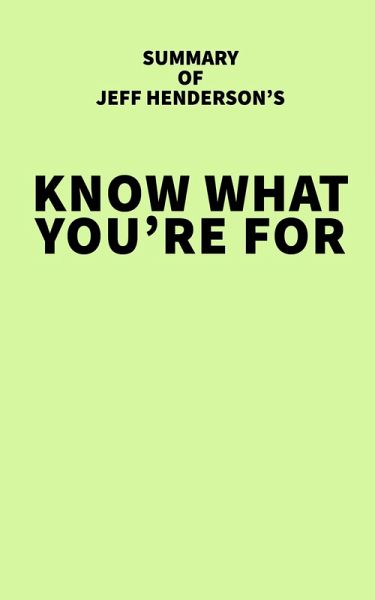 Get the Summary of Jeff Henderson's Know What You're For in 20 minutes. Please note: This is a summary & not the original book. Original book introduction: In Know What You're FOR, entrepreneur and thought leader Jeff Henderson makes it clear that if we want to change the world with our products or our mission, then we must shift the focus of our messaging and marketing. Rather than self-promoting, we must transform our organizations to be people-centric. This sounds like a no-brainer, but looking closer shows just how little this is true and how impactful the change would be if it were. Whether you're a business leader, a change advocate, or a movement maker, Know What You're FOR will help you - and your organization - thrive.