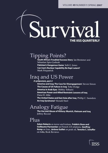 Volume 49 of Survival- The IISS Quarterly publication. (The International Institute for Strategic Studies) First published in Spring 2007. Routledge is an imprint of Taylor & Francis, an informa company.