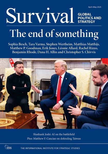Survival 67.2 (April-May 2025), 208 Alliance of Revisionists: A New Era for the Transatlantic Relationship, by Sophia Besch and Tara Varma The End of Illusion: Why Europe Needs Independence from the United States, by Stephen Wertheim Managing Divergence: The Transatlantic Economic Future, by Matthias Matthijs and Matthew P. Goodman Transatlantic Rupture: Legitimacy, Integration and Security, by Erik Jones Transatlantic Security in a New Era, by Léonie Allard and Rachel Rizzo Europe's Security Crisis: The Case for 'Active Pessimism', by Benjamin Rhode China and America: How Xi Jinping Has Changed the Game, by Hilton L. Root AI on the Battlefield: A Fait Accompli?, by Shashank Joshi The US Facing Israel: From Restrainer to Enabler, by Rob Geist Pinfold Noteworthy: Trump, Vance and Zelenskyy States of Denial: Sensibly Defending Taiwan, by Matthew F. Cancian From Petrodollar Partners to Geo-economic Rivals: Washington and the Arab Gulf States, by Hasan T. Alhasan Sadie's People, by Jonathan Stevenson Book Reviews Environment and Resources, by Shiloh Fetzek United States, by David C. Unger Middle East, by Ray Takeyh Transatlantic Relations: Is There a Beginning After the End?, by Dana H. Allin and Christopher S. Chivvis