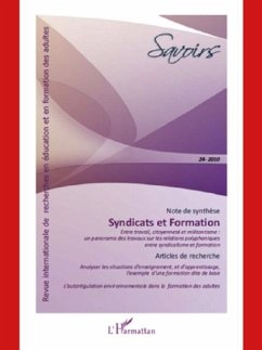 Ce numero met au jour les differentes formes de liens possibles entre syndicalisme et formation. Apres une premiere partie historique, et une seconde institutionnelle, ce volume traite de la formation syndicale ou des dispositifs mis en ?"e;uvre par les organisations syndicales pour permettre aux militants d'exercer leur mandat de la meilleure facon possible, et d'autre part de la place prise par les syndicats dans le developpement d'une politique de formation.
