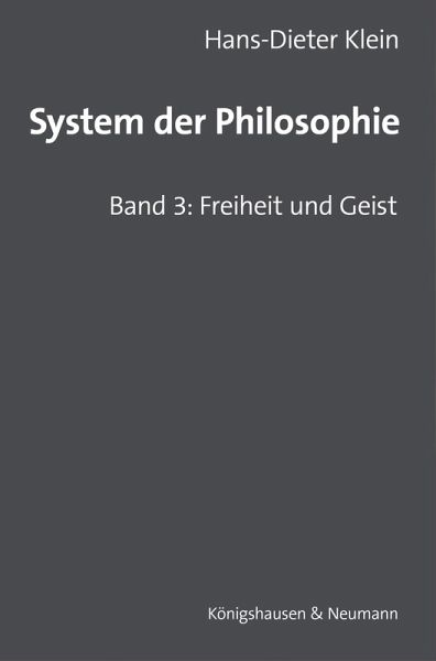 Der dritte Band von System der Philosophie (Band I und II bei Peter Lang) behandelt die noch ausständigen Aspekte der Begriffe von Freiheit und Geist, deren Definition und Herleitung im ersten Band vorgelegt wurden. Nach einer zusammenfassenden Darstellung der Gesamtkonzeption des Systems des Autors folgt ein Entwurf der Ethik sowie eine Staats- und Rechtsphilosophie. Die weiteren Kapitel führen die realphilosophischen Systematiken der Geschichts-, Kunst-, Religions- und Philosophiephilosophie (von den griechischen Anfängen bis in die Gegenwart) aus. Die Religionsphilosophie versucht eine Reflexion auf die Religion von den urgeschichtlichen Anfängen über die hochkulturelle Stufe bis zum Monotheismus, wobei besonderes Augenmerk auf die Aufklärung gelegt wird.