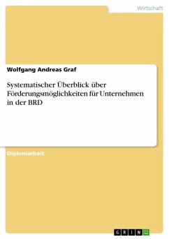 Diplomarbeit aus dem Jahr 1999 im Fachbereich BWL - Allgemeines, Note: 1, Hochschule für angewandte Wissenschaften Landshut, ehem. Fachhochschule Landshut, Sprache: Deutsch, Abstract: Im Rahmen dieser Arbeit werden dem Anwender mit einer Art "Fördermittelkatalog" komprimierte, systematisch aufgebaute Zusammenfassungen der wichtigsten Förderprogramme - der EU (Kapitel 2.1) und - des Bundes (Kapitel 2.2) zur Verfügung gestellt. Aus Gründen des Umfanges werden im Bereich - der 16 Bundesländer (Kapitel 2.3) die Förderprogramme nicht einzeln detailliert dargestellt; es wird lediglich auf die entsprechende Seite der "Generalübersicht" verwiesen.