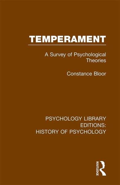 Originally published in 1928, this title attempts to give a short historical outline of the treatment which 'temperament' had received at the hands of psychological theory. From the time of Hippocrates 'temperament' had figured in philosophical and psychological writings as one of the constituents which determine behaviour. The language in which it had been treated had been vague and obscure, and this, combined with the equally indeterminate associations which were carried over from the speech of everyday life at the time, had contrived to surround the subject with an atmosphere of unreality which was in sharp contrast to the significance of the role assigned to it.