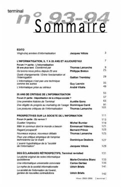 Vingt-cinq ans apres la fondation de Terminal, les modalites de l'informatisation ont change : generalisation de la micro-informatique et des technologies a base numerique, predominance des reseaux sur les machineries...Pourtant le probleme initial demeure le meme : l'informatique peut-elle etre mise au service du developpement, alleger le travail, liberer du temps et aider a des echanges humains desinteresses, ou sera-t-elle completement monopolisee par des interets commerciaux et militaires, des visees de surveillance et de manipulation des populations ?