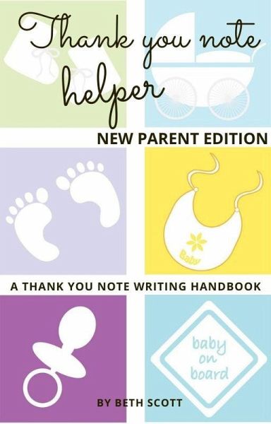 This book, the New Parent edition of "Thank You Note Helper", will help make writing thank you notes for baby gifts as easy as possible. The content is specifically geared for the thank you notes that a new parent will be writing. The tips and hints inside these pages are intended to help you alleviate the stress of writing thank you notes and help you complete them faster.