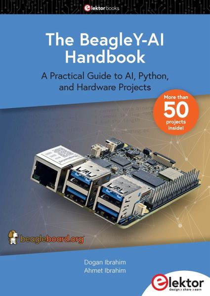 Welcome to your BeagleY-AI journey! This compact, powerful, and affordable single-board computer is perfect for developers and hobbyists. With its dedicated 4 TOPS AI co-processor and a 1.4GHz Quad-core Cortex-A53 CPU, the BeagleY-AI is equipped to handle both AI applications and real-time I/O tasks. Powered by the Texas Instruments AM67A processor, it offers DSPs, a 3D graphics unit, and video accelerators. Inside this handbook, you'll find over 50 hands-on projects that cover a wide range of topics-from basic circuits with LEDs and sensors to an AI-driven project. Each project is written in Python 3 and includes detailed explanations and full program listings to guide you. Whether you're a beginner or more advanced, you can follow these projects as they are or modify them to fit your own creative ideas. What yoüll be working on Here's a glimpse of some exciting projects included in this handbook: > Morse Code Exerciser with LED or Buzzer Type a message and watch it come to life as an LED or buzzer translates your text into Morse code. > Ultrasonic Distance Measurement Use an ultrasonic sensor to measure distances and display the result in real time. > Environmental Data Display & Visualization Collect temperature, pressure, and humidity readings from the BME280 sensor, and display or plot them on a graphical interface. > SPI - Voltmeter with ADC Learn how to measure voltage using an external ADC and display the results on your BeagleY-AI. > GPS Coordinates Display Track your location with a GPS module and view geographic coordinates on your screen. > BeagleY-AI and Raspberry Pi 4 Communication Discover how to make your BeagleY-AI and Raspberry Pi communicate over a serial link and exchange data. > AI-Driven Object Detection with TensorFlow Lite Set up and run an object detection model using TensorFlow Lite on the BeagleY-AI platform, with complete hardware and software details provided.