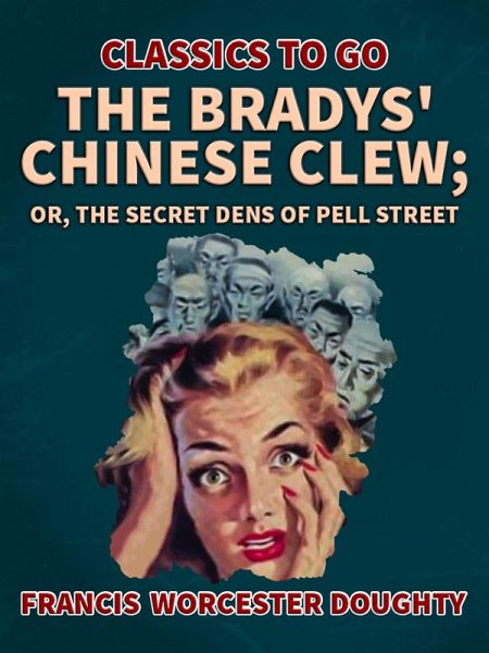 Excerpt: "Late in the evening on August 12th, 19-, one of the heaviest thunder storms known in many years broke over the city of New York. The storm was accompanied by a terrific gale; trees were blown down, sign boards wrecked, houses were unroofed, sewers overflooded, and there was a general shake-up all along the line. Of course, lives were lost here and there, especially on the rivers. It taxed the memory even of the oldest inhabitant to recall such another storm. During the height of the gale two gentlemen sat in the famous Tuxedo restaurant, that delight of chop suey fiends and slumming parties, on Pell street, Chinatown, indulging in a late supper, Chinese style. One was an elderly man of striking appearance and peculiar dress. He wore a long blue coat with brass buttons, an old-fashioned stock and stand-up collar, while hanging to a peg above his head was a big white felt hat with an unusually broad brim. His companion was a bright looking young fellow in his twenties. The two men were none other than the world-famous detectives, the Bradys of the Brady Detective Bureau, Union Square, New York."